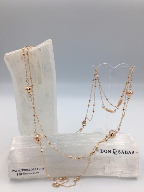 Cadena collar dorado exquisito doble con bolitas doradas de oro laminado 18K.