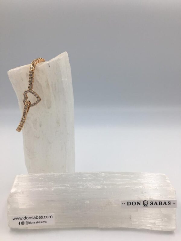 Pulsera binaria circonias con broche corazón con circonias de oro laminado 18K.