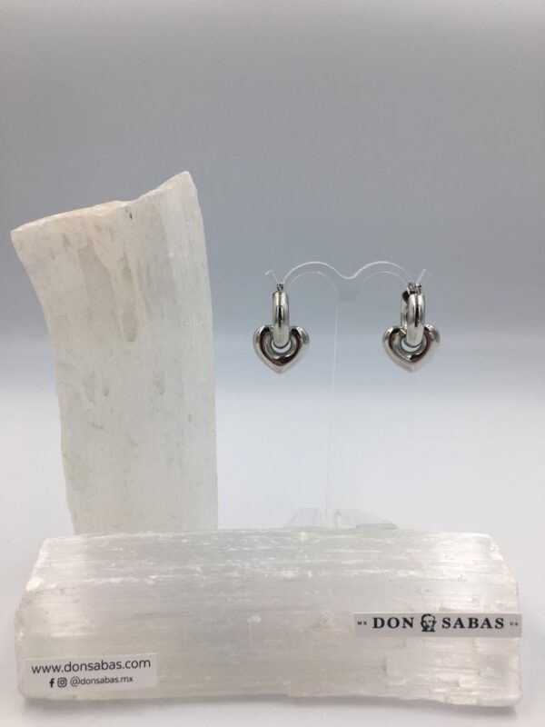 Arracadas C plateada lisa, gruesa 4mm, chica con corazón de rodio.
