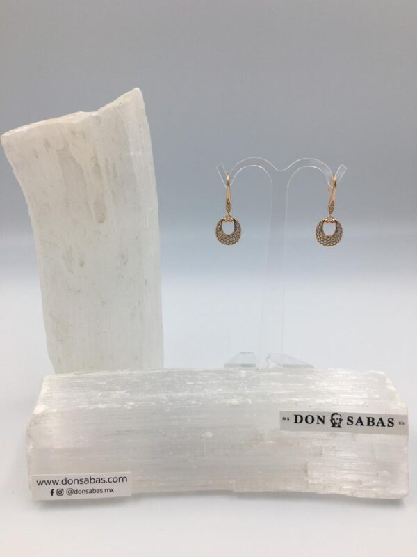 Aretes dorados, ganchos y luna con circonias en oro laminado 18K.