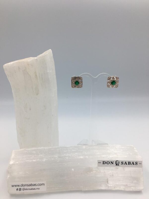 Aretes dorados cuadro de circonias blancas con circonia verde en oro laminado 18K.
