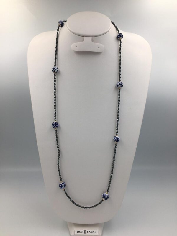 Collar dorado, Hematita facetada con cuentas de Talavera con broche chapa de oro 14K.