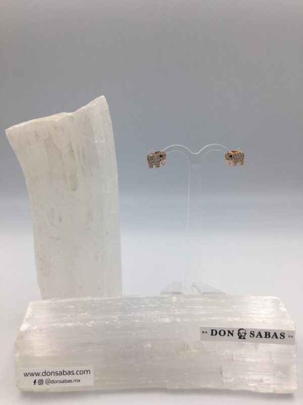 Aretes dorados, elefante con circonias en chapa de oro 14K.