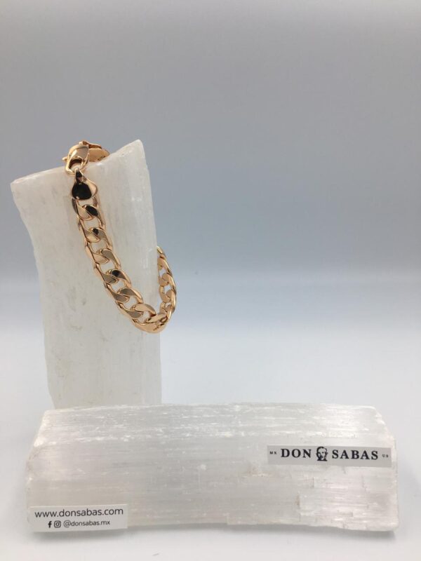 Pulsera dorada, tejido barbada de 10mm de oro laminado 18K.