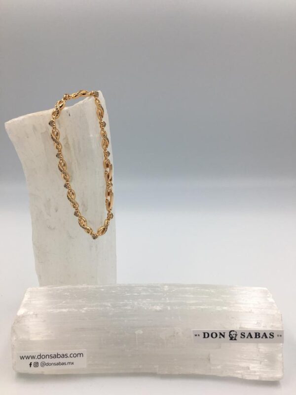 Pulsera dorada, tejido barbada de 10mm de oro laminado 18K.