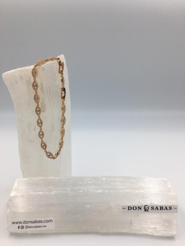 Pulsera ojitos de circonias blancas, de oro laminado 18K.
