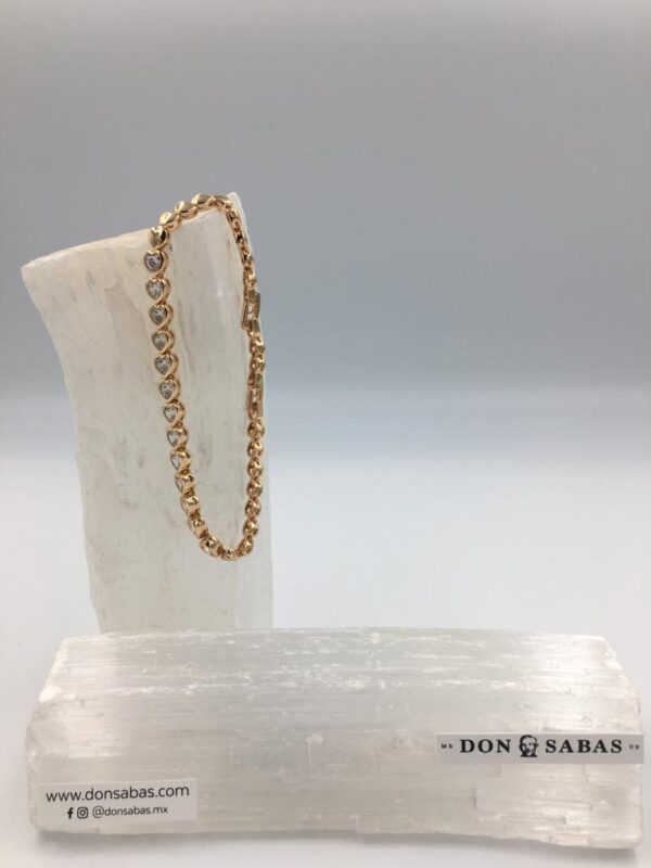Pulsera corazones con piedras y biselados de oro laminado 18K.