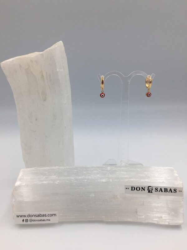 Aretes dorados, arracadas con ojo de color en oro laminado 18K.