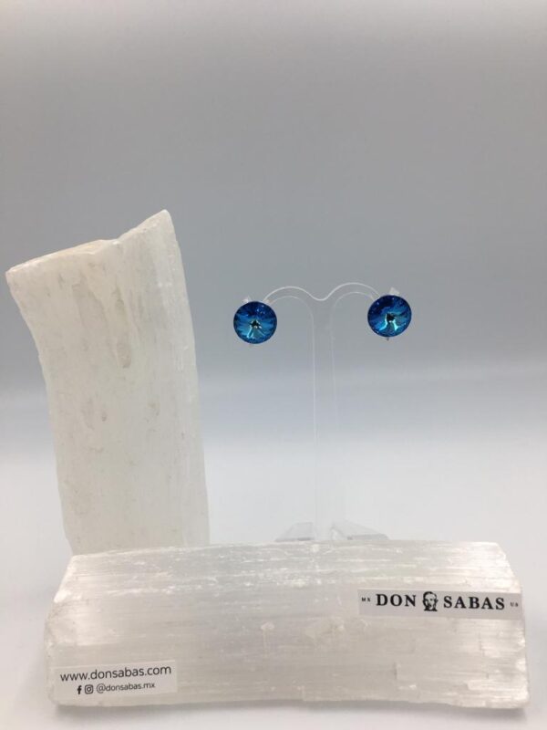 Aretes plateados, swarovski azúl en chapa de rodio.