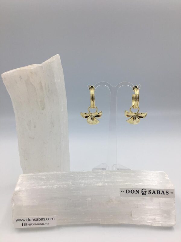 Aretes dorados, arracada flor llamativa en chapa de oro 14K.