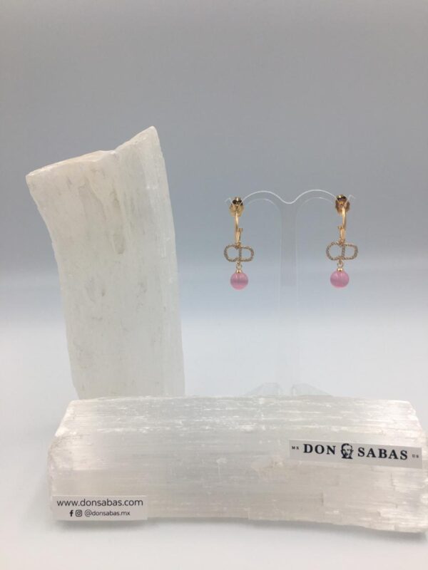 Aretes dorados dos en uno, arracada con cuarzo rosa 7mm en oro laminado 18K.