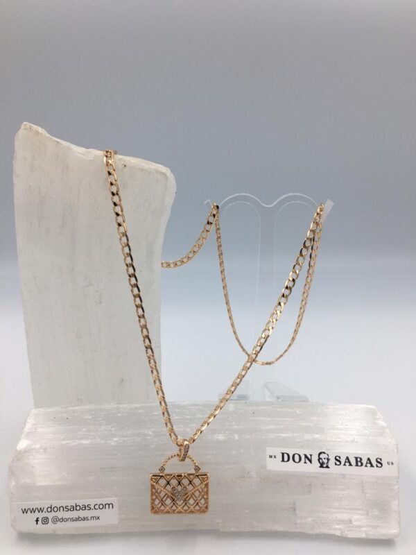 Dije bolsa dorada con circonias de oro laminado 18K. (NO incluye cadena)