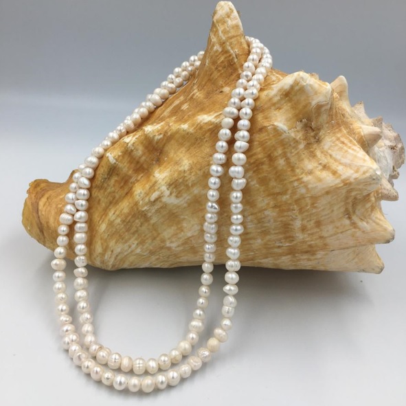 Collar doble de perlas blancas naturales (6 mm). Broche chapa de oro 14K.