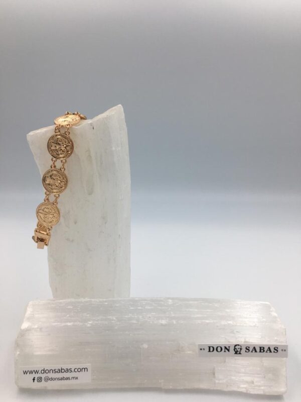 Pulsera dorada, medallas de San Benito, de oro laminado 18K.