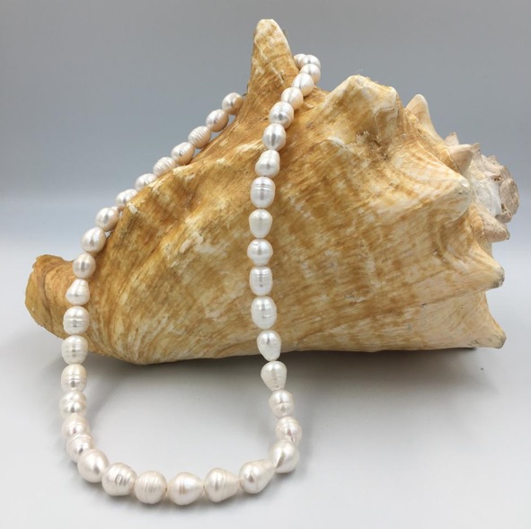 Collar de perlas naturales (11 mm) con broche chapa de oro 14K.