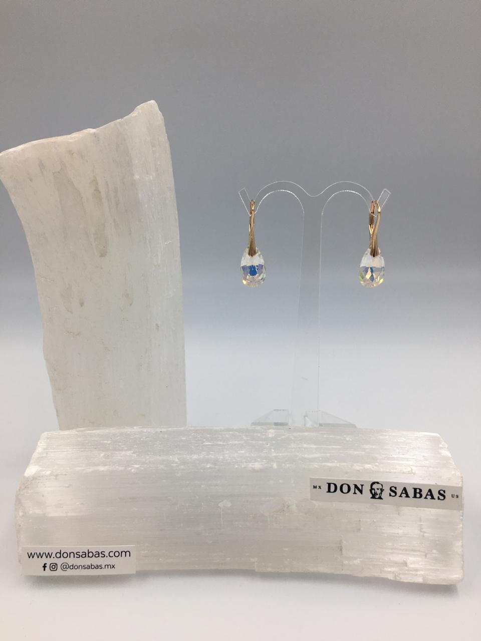 Aretes dorados, arracada con gota swarovski blanco en oro laminado 18K.