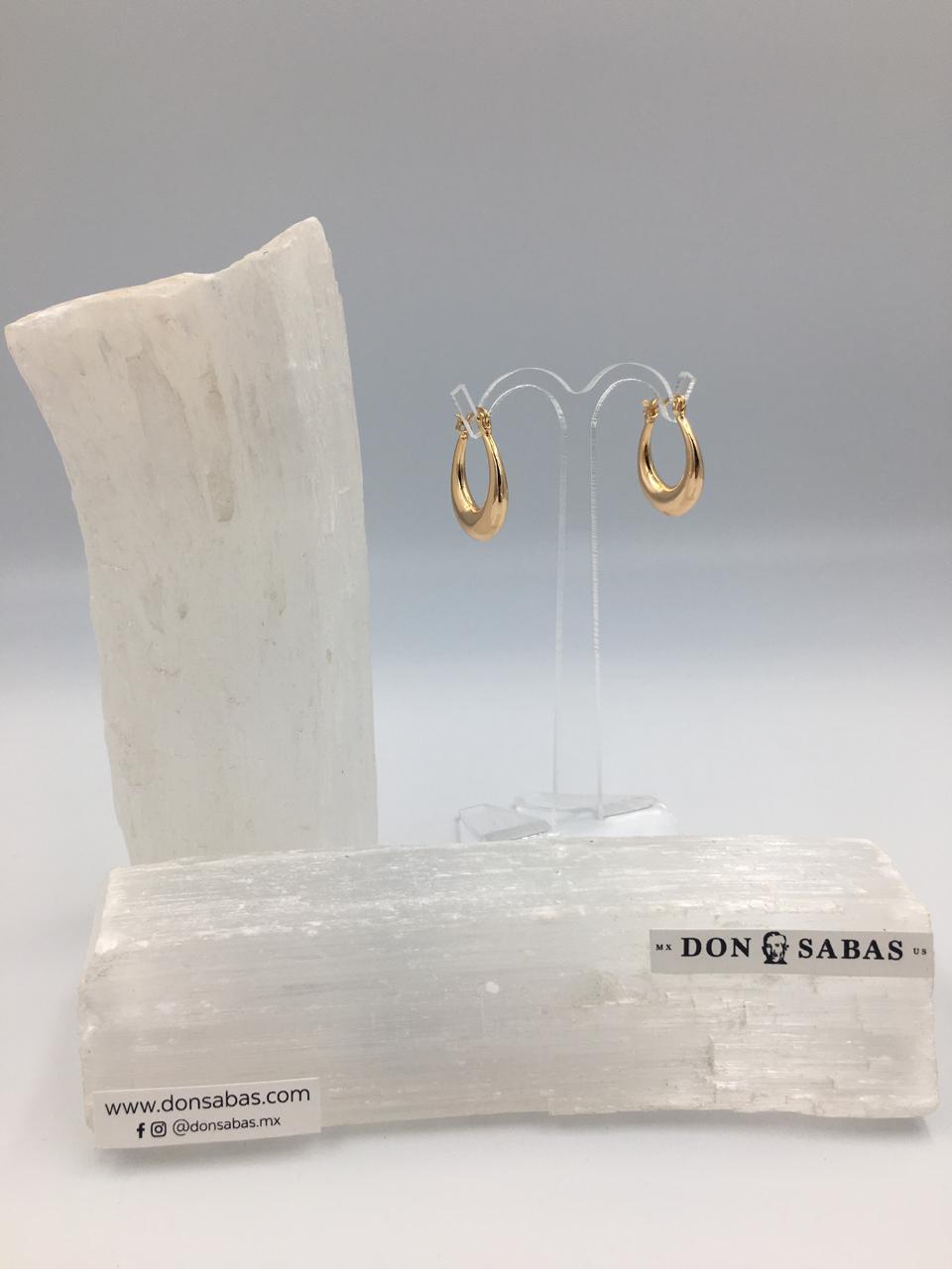 Aretes hipoalergénicos color dorados, diseño arracada media luna, en oro laminado 18K.