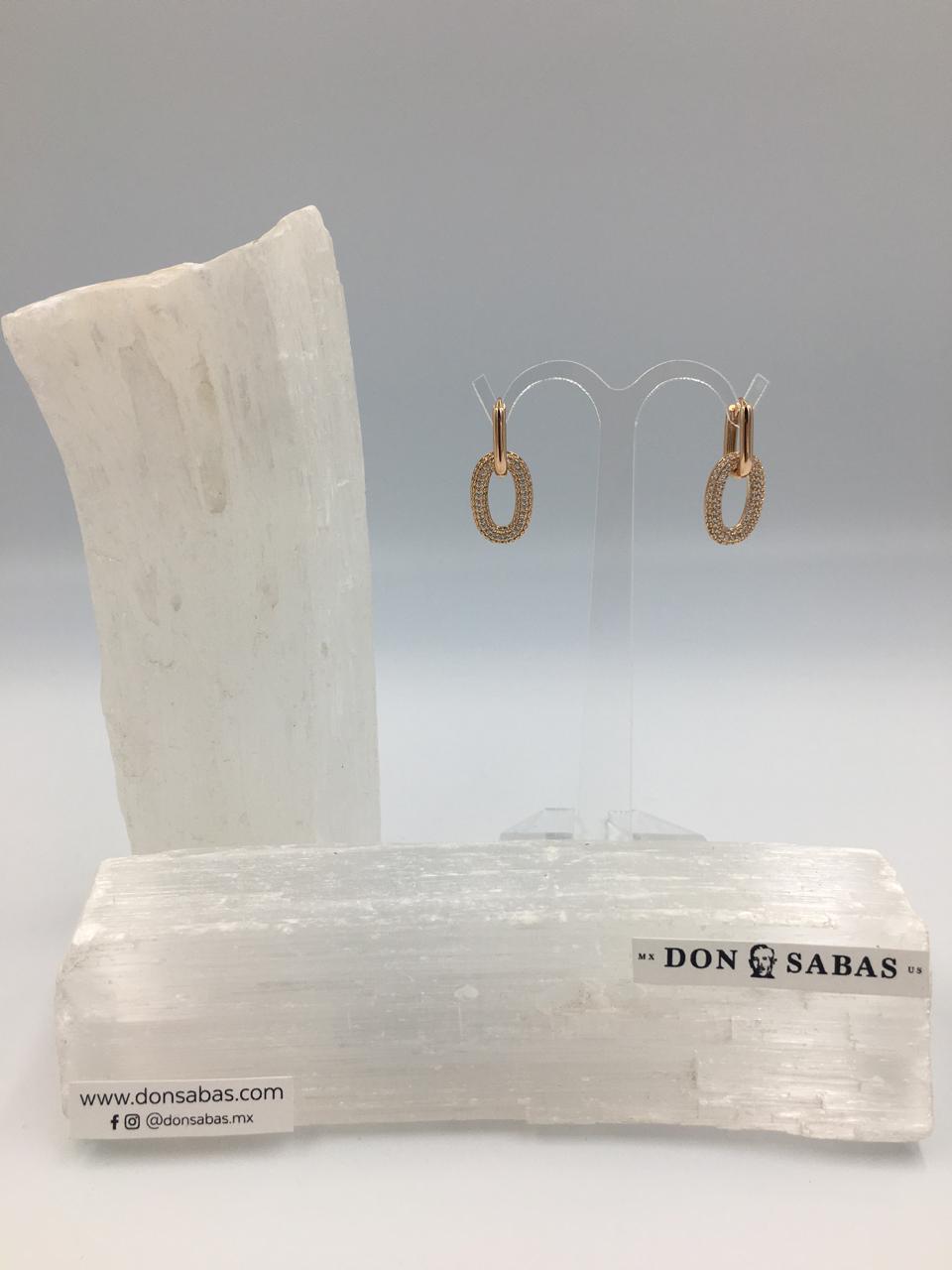 Aretes hipoalergénicos color dorados, diseño arracada con f0rma oval de circonias , en oro laminado 18K.