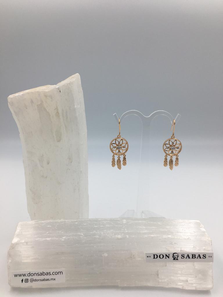 Aretes hipoalergénicos color dorados, diseño atrapa-sueños, tamaño mediano.