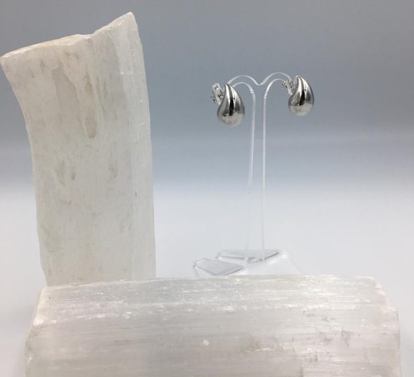 Aretes hipoalergénicos color plateados, diseño bottega, gota de agua, tamaño chico, en chapa de rodio.