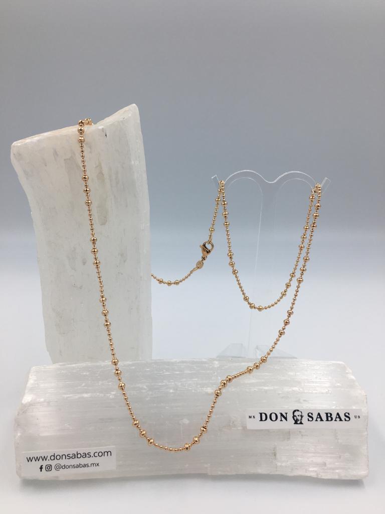Cadena color dorada, diseño bolitas 2mm de oro laminado 18K.