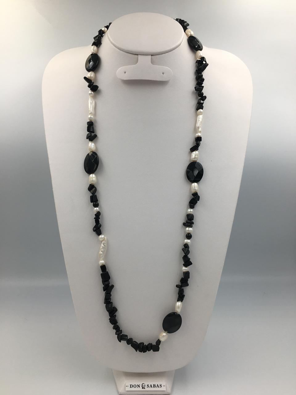 Collar de obsidiana con perlas naturales, no tiene broche.