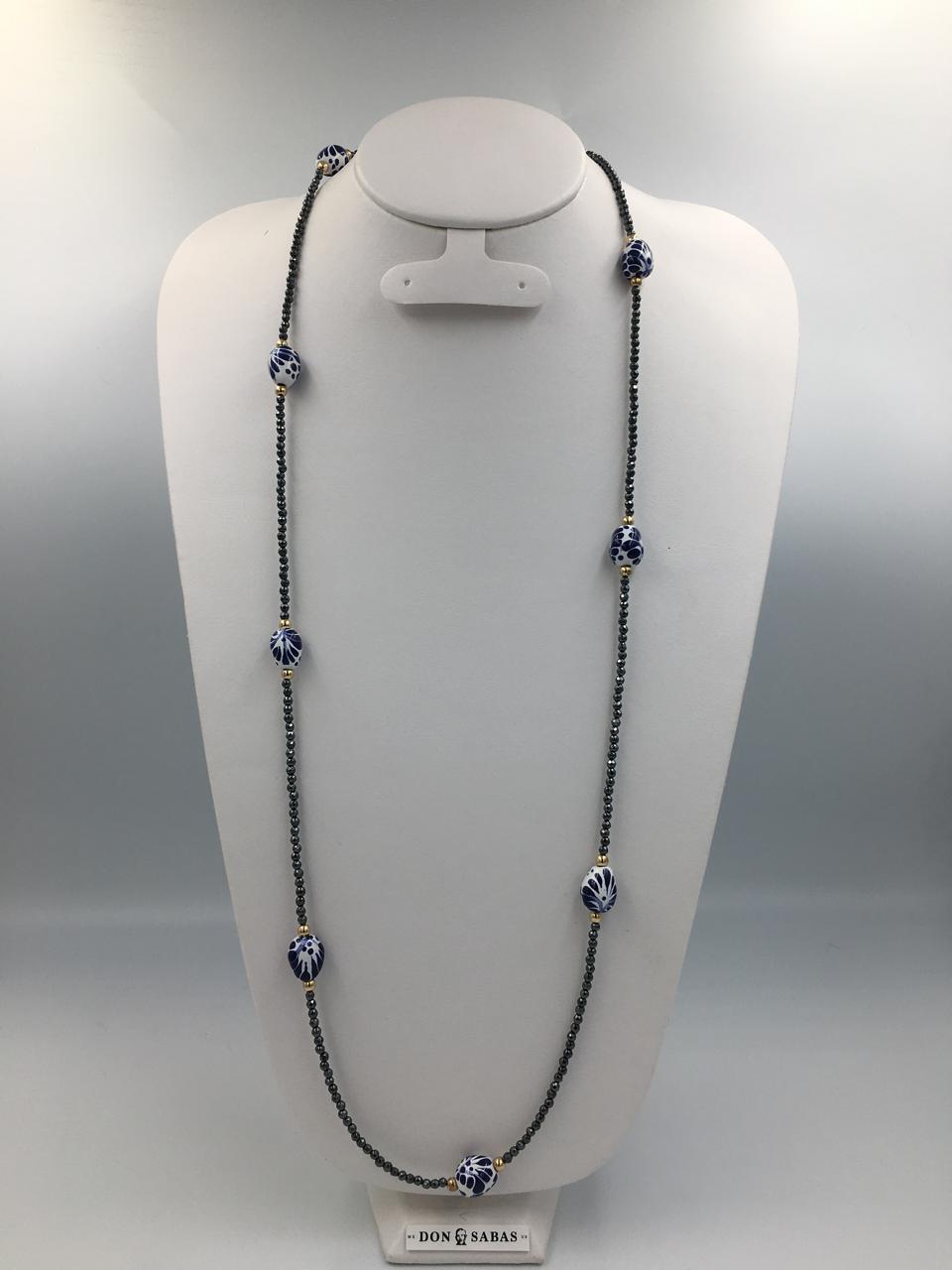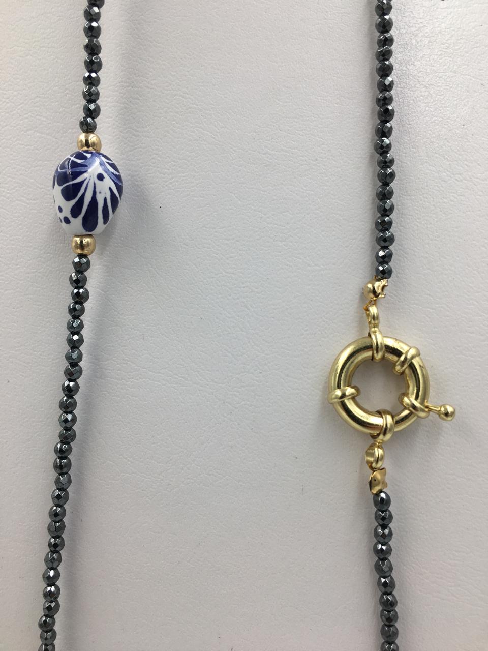 Collar dorado, Hematita con barrilitos de Talavera de 8/11mm y broche chapa de oro 14K.