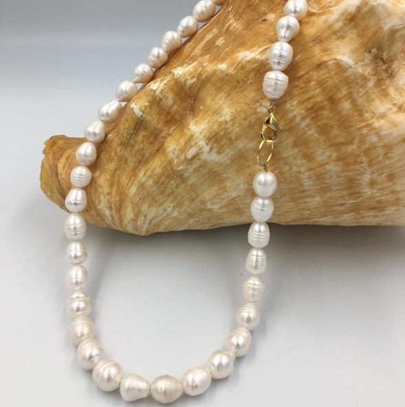 Collar de perlas naturales (11 mm) color blanco, con broche chapa de oro 14K.