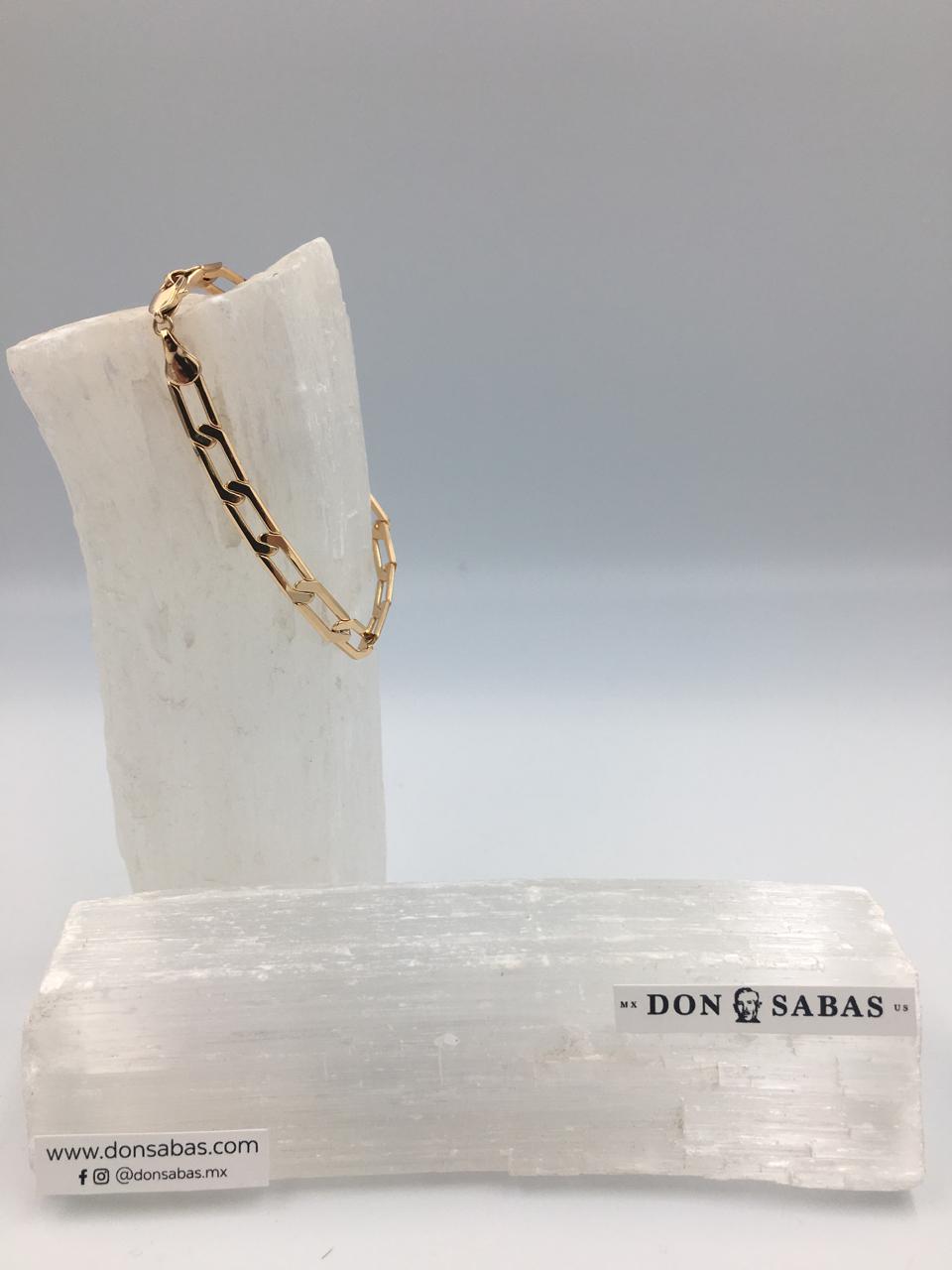 Pulsera color dorada, diseño eslabón de cadena 5 mm, en oro laminado 18K.