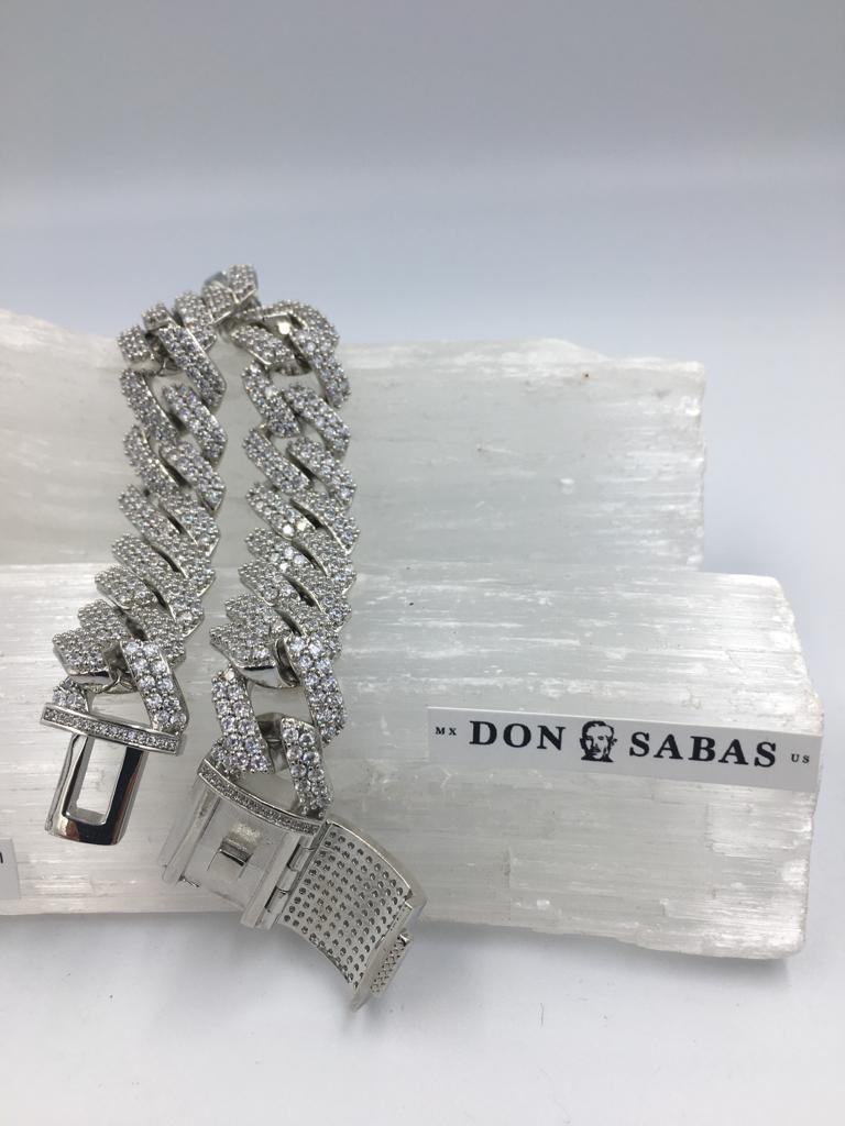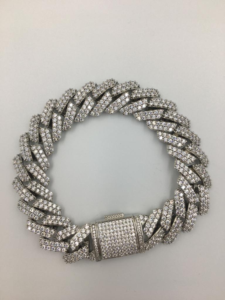 Pulsera color plateada con circonias, tamaño grande.